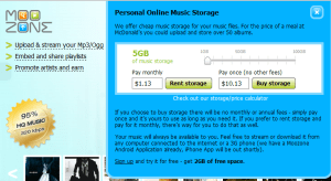 Another option which I haven’t seen before, is the ability to buy space outright for the life of your account with MooZone. For $10.13 one time payment you get 5GB of storage, or for $75.20 you get to keep 50GB for the life of your account.