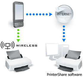 Install the PrinterShare server software on you windows or Macintosh based computer and share one or more printers. Install the mobile PrinterShare client on your droid, login to your PrinterShare account and print to any of the shared printers no matter where you are in the world!