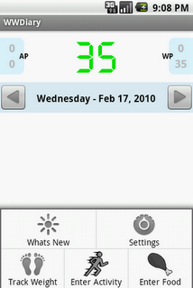 This app is awesome and works really really well. If you are a Weight Watcher and are looking for a convenient way to track your points on your Android phone look no further, this free app does it all and the author is very active in keeping it up-to-date. On November 28th 2010 the weight watchers formula will change, the author has already committed to modify his program to conform to the new system!!
