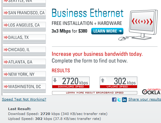 I turned off my laptops wireless adapter and then the tethered my Droid using PDA Net. I achieved very similar results. I Noticed that my public IP had not changed, I then realized that the Droid was connected to my homes WiFi. This shows that PDA Net software has no or very negligible overhead when used as a modem. PDA Net on the Droid has a real-time ‘meter’ you can watch to see the amount of data you have downloaded/uploaded, useful if you have a cap to worry about (Most US 3G consumers have to worry about usage caps).