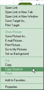 2. Right click the button or link and select ‘copy shortcut’. (Firefox users select ‘copy link location’).