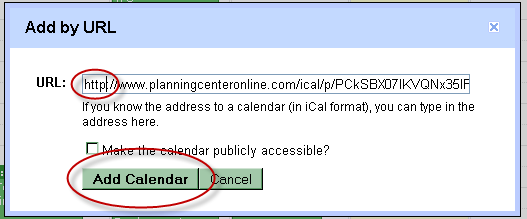 Here I use an example Web Service called Planning Center Online which is a planning site for religious worship services. However any web service calendar with an iCal link can be synchronized with Google Calendar, here’s how.